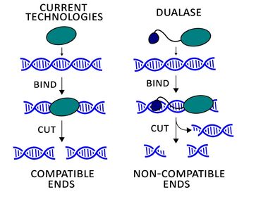 Dualase is a platform gene editing technology that cuts DNA twice and leaves non-compatible DNA ends.